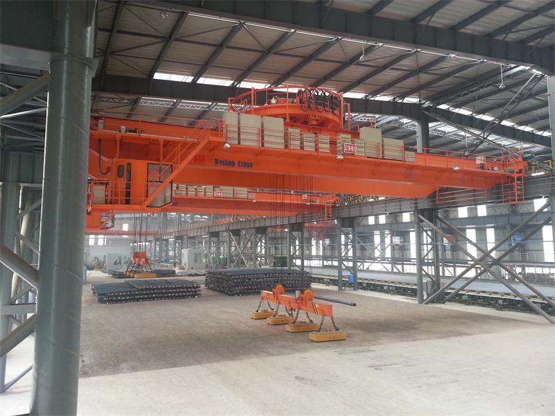 1.本起重機(jī)帶有可拆卸的電磁盤(pán),特別適用于搬運(yùn)具有導(dǎo)磁性的黑色金屬制品與材料如鋼錠、型鋼、生鐵塊等。主要用于鋼鐵企業(yè)扎線、成品,船廠鋼料堆場(chǎng)、下料車(chē)間等。