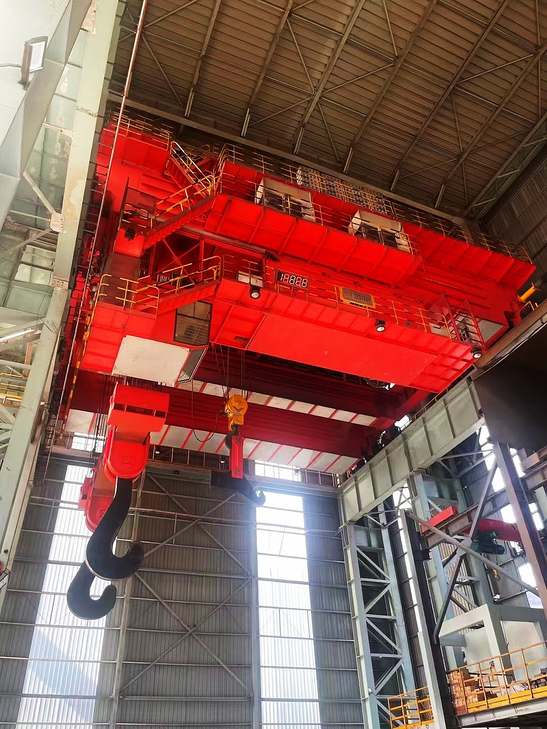 鑄造起重機(jī)是煉鋼連鑄工藝中的主要設(shè)備,主要用于轉(zhuǎn)爐加料跨向轉(zhuǎn)爐兌鐵水;在精煉跨將鋼液包吊運(yùn)至精煉爐或在鋼水接受跨將鋼液吊運(yùn)到連鑄大包回轉(zhuǎn)臺(tái)上。