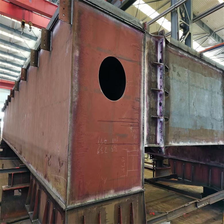 3、橋架結(jié)構(gòu)為三梁四軌設(shè)計,主、副梁均采用寬翼緣偏軌箱形結(jié)構(gòu);